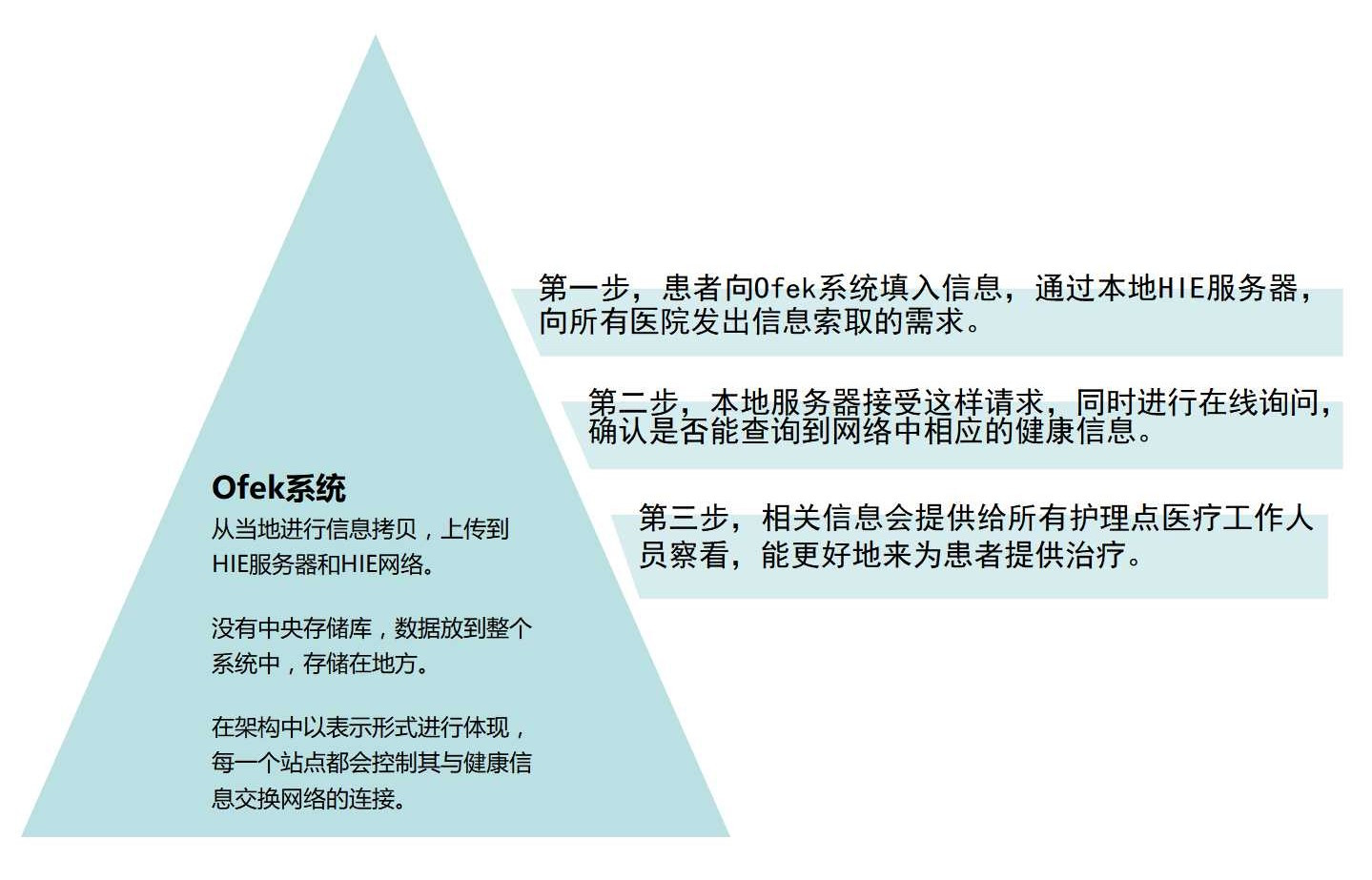 直至2011年,当时的以色列卫生部部长下定决心,构建HIE网络。“这个全国项目的目标是实现不同机构间的信息共享。”Nachman Ash在接下来的讲话中,例举Ofek系统的操作模式,详细阐释了HIE的架构数据流以及安全方面的内容。